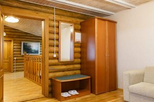 Номера расположены в коттеджах из натурального дерева. Номера оснащены авторской мебелью. Спальная комната с двумя односпальными кроватями, которые трансформируются в двуспальную и кожаным диваном, платяной шкаф, стол и стулья, мини-кухня, оборудованная посудой и бытовой техникой: посуда, электрочайник, мини-холодильник, микроволновка